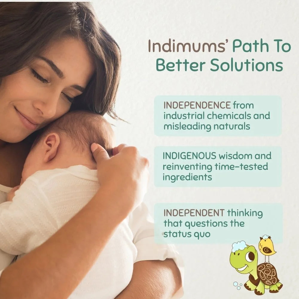 इंडिमम्समध्ये आम्ही फोम-बूस्टिंग केमिकल्स टाळतो. आमचे सौम्य रीठा/साबणावर आधारित नैसर्गिक क्लीन्सर रासायनिक क्लीन्सरच्या तुलनेत कमी फोम करते, परंतु तितकेच प्रभावीपणे स्वच्छ करते - सौम्य आणि सुरक्षित क्लीन्सिंगसाठी परिपूर्ण.